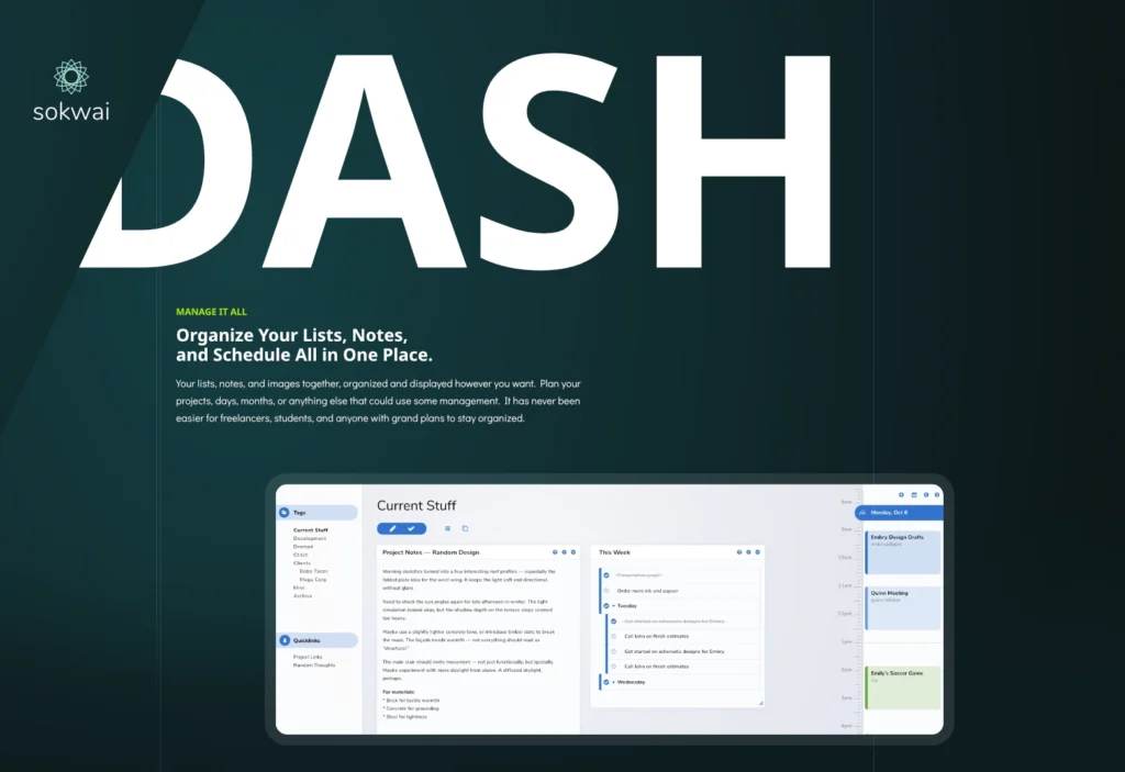 I’ll be using my sokwai.com domain to house the pages for my various apps that I would like to develop over the coming years, with Dash being the first. I’ve knocked together a quick initial design for the top section of the page, which I’m fairly happy with, and so I’ve started to code this up.